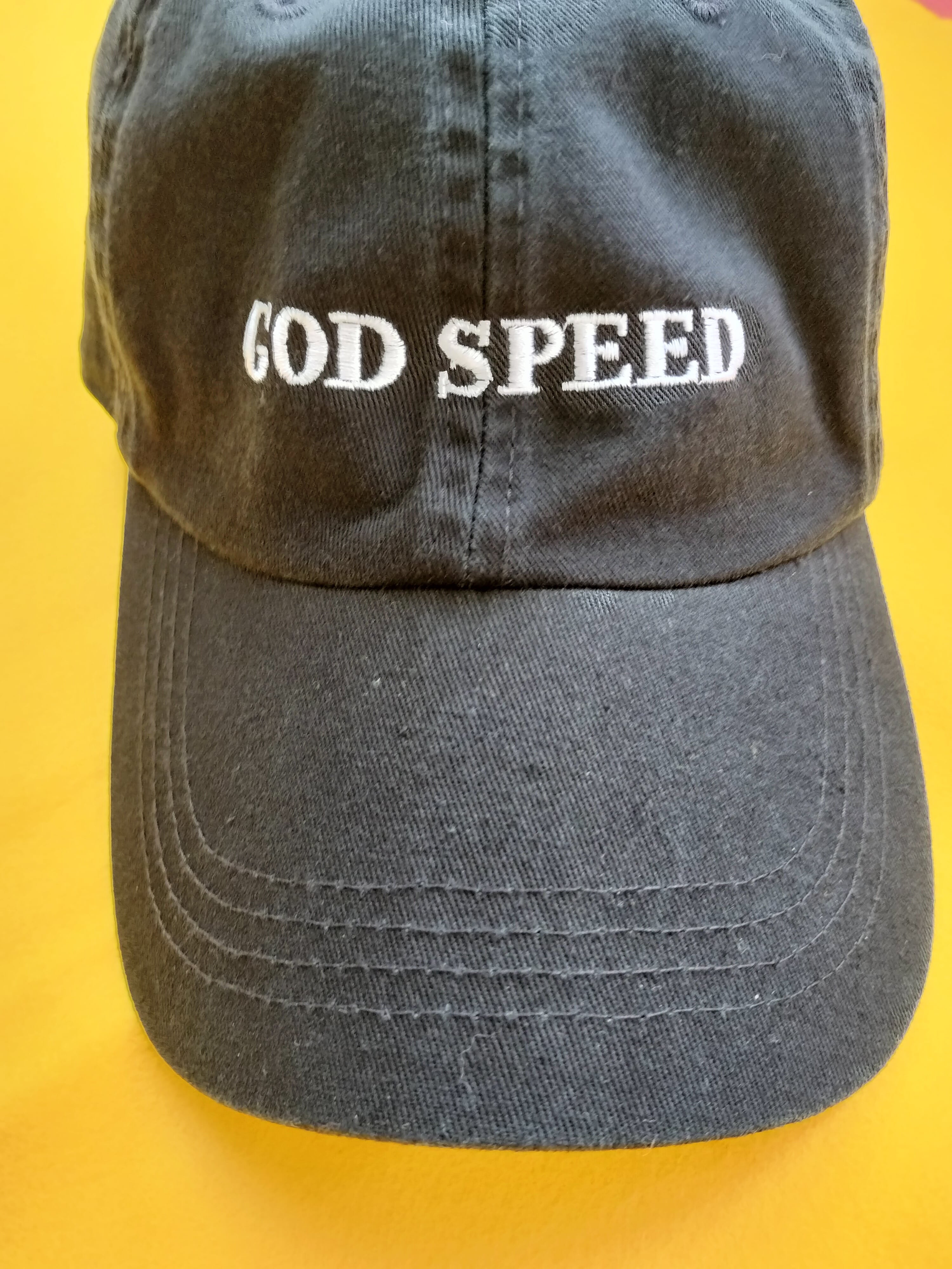 GOD SPEEDのシルバー刺繍ロゴが光るコットンキャップ